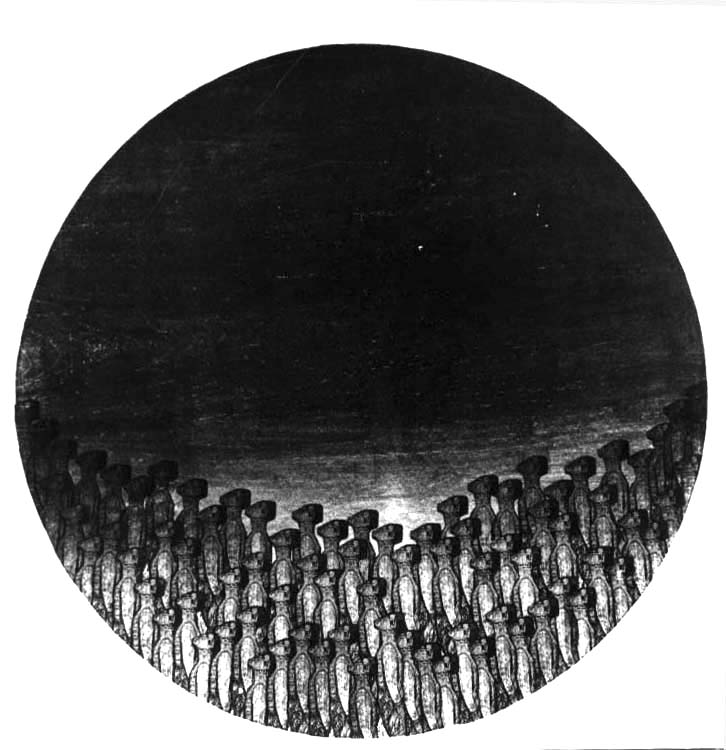 De estas variadas experiencias -«pequeños laboratorios clandestinos»- de rescate de sus propias imágenes o de las fortuitas que se despiertan al azar de alguna mancha o línea casual, surge El proceso de la mancha (Homenaje a Batlle Planas) serie que también se suma a los discursos que investigan cualquier posibilidad expresiva. A esta serie de aventuras creativas pertenece además el montaje presentado en el 78 en la muestra de Arte catastrófico y que denominó «Señorita sin pies ni cabeza» y que hoy se instala para recibir al espectador.